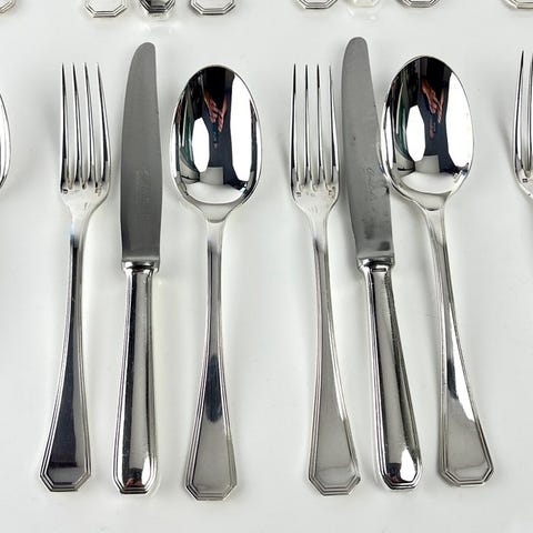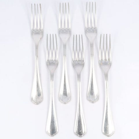 Beskrivelse: Smukke sæt af seks tærtegaffler, udført i Christofle-model Albi.