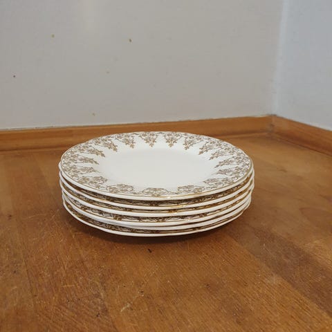 Spisestel produceret af det tyske firma Schumann Arzberg-Bavaria. Væsentlig 24k-guldkant.