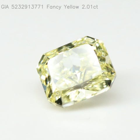 Naturlig firkantet diamant på 1,21 ct med modifieret brillantslibning, fancy gul, VS1, målene 6,18 × 5,79 × 3,89 mm, polering og symmetri god, GIA-certificeret (rapport nr. 5232913843), laserskåret gravering, ikke forseglet. Klik på den blå "gå til varen" knap, for at købe eller byde på denne vare. Den samlede pris vil blive vist inden du afgiver dit bud.
