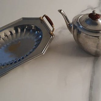 Raffineret og elegant te- og kaffesæt fra æraen, autentisk udtryk for Art Déco-smagen, en periode hvor funktionalitet og design mødtes i harmoniske og tidløse former.