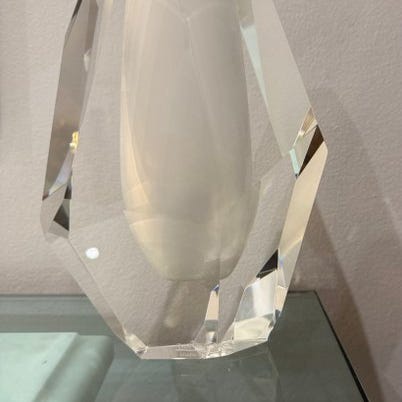 Daum France glas-skulptur 'Vela' højde 41,5 cm, bredde 20 cm og dybde 9 cm, vægt ca. 3,465 kg, gennemsigtigt massivt krystal, håndgraveret basis signatur 'Daum France', cirka 1970–1980, i fremragende stand. Klik på den blå "gå til varen" knap, for at købe eller byde på denne vare. Den samlede pris vil blive vist inden du afgiver dit bud.