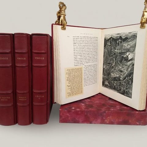 Pragtfuld og sjælden forlagskartonbind til denne originale udgave af den franske oversættelse, der blev udarbejdet af Louis Viardot, og med illustrationer af Tony Johannot (to frontispicer trykt på Chine-papir, to titelark gravurerede samt 800 store vignetter i teksten).