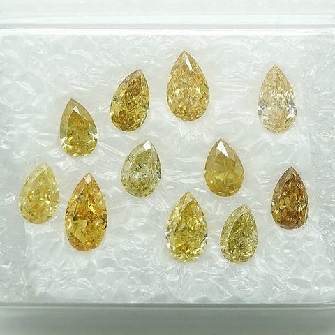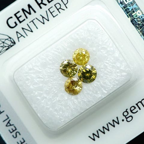 Tolv naturlige fancy‑farvede rundskinnende diamanter med samlet vægt 1,00 ct, klarets VS1, med Gem Report Antwerp (1810036033 AN), oprindelse Afrika, forseglet af laboratoriet, farve med gullig/orange undertone. Klik på den blå "gå til varen" knap, for at købe eller byde på denne vare. Den samlede pris vil blive vist inden du afgiver dit bud.