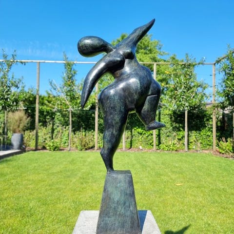 Dette er et smukt moderne stiliseret skulptur af en dykkende person i god stand, alderspletter på patinaen. Se billederne. Meget smuk i din have eller i dit interiør. Målene på dette smukke skulptur er som følger +/-):
