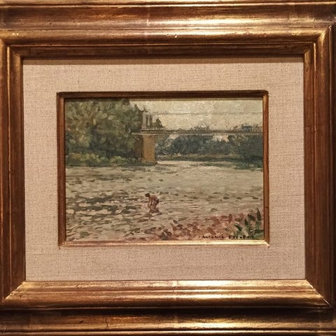 Olie på lærred af Juan de la Cruz Soler (født 1951), kaldet Distinción en la Belle Époque, i postimpressionistisk stil fra 1980’erne, skildrer en dagscene i byen med en socialt højstående dame, indrammet, lærred 33 × 41 cm (55 × 64 cm med ramme), underskrevet af kunstneren. Klik på den blå "gå til varen" knap, for at købe eller byde på denne vare. Den samlede pris vil blive vist inden du afgiver dit bud.