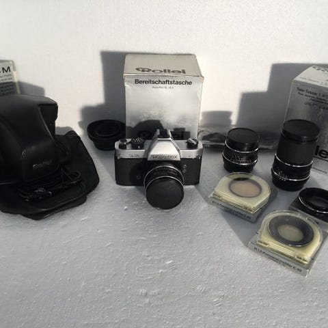 KameraWerkstatten: Praktica FX 3, Serienr. 268736, med Carl Zeiss Jena Biotar 2/58. Nr. 5098175 objektiv. Kameraet er i normal brugt stand, med få synlige brugsspor. Funktionel, testet med film. Linserne er rene, uden ridser eller svampe. Med egen, original lædertaske.