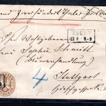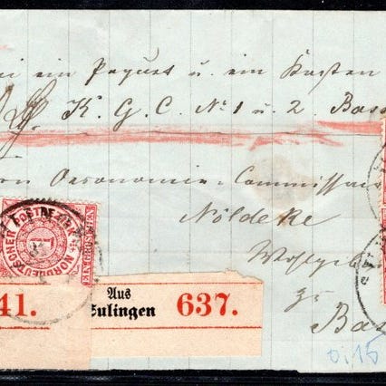 Venligst gennemse scanningerne. Begge stykker har fejl, men ser visuelt meget pæne ud. Sådanne frankeringer koster hurtigt flere hundrede euro pr. stykke, hvis de er fejlfri. Her er en mulighed for at erhverve dem billigt.
