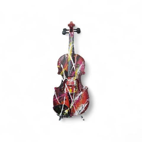 Dette værk er meget sjældent, fordi han med dette instrument kun lavede 3 værker. Faktisk, på en flerlaget panel malet i sort akryl, har han fastgjort en ukulele, brændt den delvist og udført et rødt dripping. Værket er fastholdt i et perspex-etui. Kunstnerens signatur og årstal på bagsiden af værket i midten.