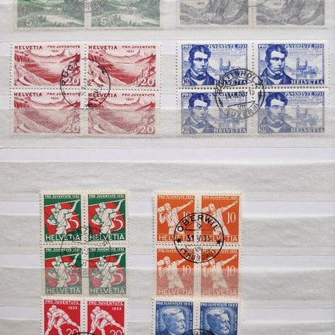 Schweiz, otte Juve-serier med centralt første-dags stempel, afstempelt, fra 1919, sjældent materiale; SBK 2017 katalogværdi 6.700; sendt som rekommanderet. Klik på den blå "gå til varen" knap, for at købe eller byde på denne vare. Den samlede pris vil blive vist inden du afgiver dit bud.
