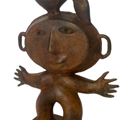 Lakken er her og der forsvundet, og skulpturen har lette brugsspor.