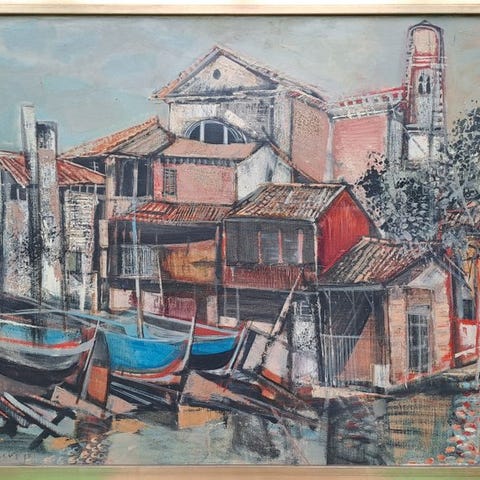 Claude Grosperrin, Palais Dario, jardins à Altana er en oliemaleri på lærred fra 1964, måler 61 × 50 cm, signeret, dedikeret og dateret 1964 på bagsiden, i fremragende stand, originaludgave, sælges med ramme, fransk oprindelse. Klik på den blå "gå til varen" knap, for at købe eller byde på denne vare. Den samlede pris vil blive vist inden du afgiver dit bud.
