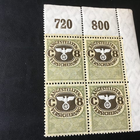 4-stykker blok 10 Rappen porto-frimærker uden kontrolnummer, rillet papir SBK Nr.12./ Bz Katalogpris 8500,00 Fr.