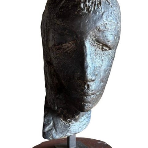 Renato Bertelli Profilo continuo del Duce er en resinreproduktion færdiggjort i bronzefarve, monteret på en sort lakeret træbase, måler 18 cm i højden, 10 cm i bredden og 10 cm i dybden, vejer 1,2 kg, usigneret og i fremragende stand. Klik på den blå "gå til varen" knap, for at købe eller byde på denne vare. Den samlede pris vil blive vist inden du afgiver dit bud.