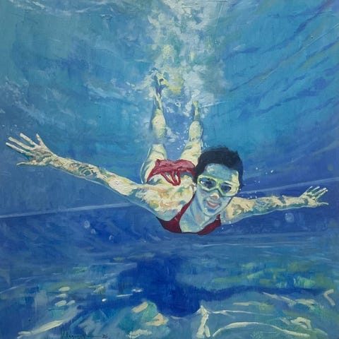 To kvindelige hænder griber fast om en moden mango, åben i midten på en eksplicit og fristende måde. Den gyldne, saftige pulp, den dybe furer og den kødfulde tekstur bliver til en kraftfuld metafor for intimitet og begær. Den røde negl, kontrasten mellem skindene og hændernes besiddende gestus forstærker den erotiske ladning i kompositionen uden nogensinde at gå på kompromis med elegancen.