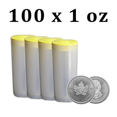 100 x 2026 1 oz $5 CAD Canadian Silver Maple Leaf Coin BU (In Tube)