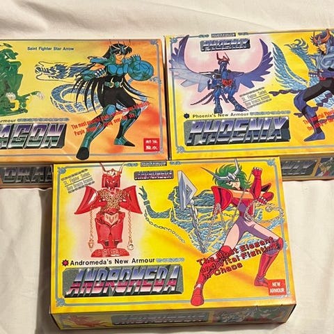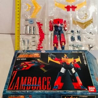 Sæt af to enestående bokse: en Kotetsu Jeeg-robot fra Takara (Go Nagai) i Magnemo / Magne-Mo legetøjsudgave fra 70’erne, med magnetiske dele og udskiftelige tilbehør samt gennemskinnelige elementer, og en boks med “Animal Ninja – Marine Style” indeholdende et motoriseret vandlegetøj med en lille blå/hvid motor, flydere, propulsionssystem med propeller, klipsbare missiler og en ninja/robot-dyrsfigur. Klik på den blå "gå til varen" knap, for at købe eller byde på denne vare. Den samlede pris vil blive vist inden du afgiver dit bud.