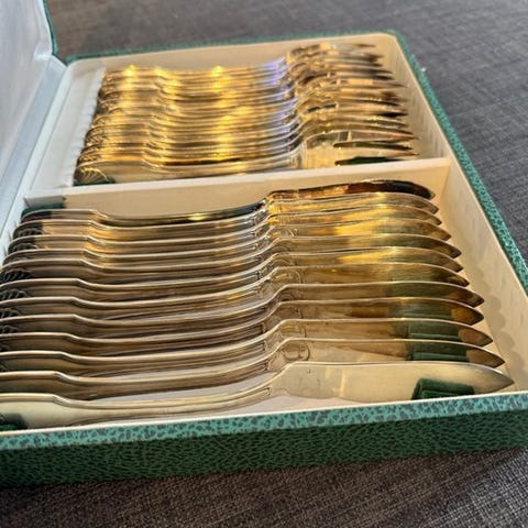 12 sølvbelagte skeer fra Cristofle. I god stand.