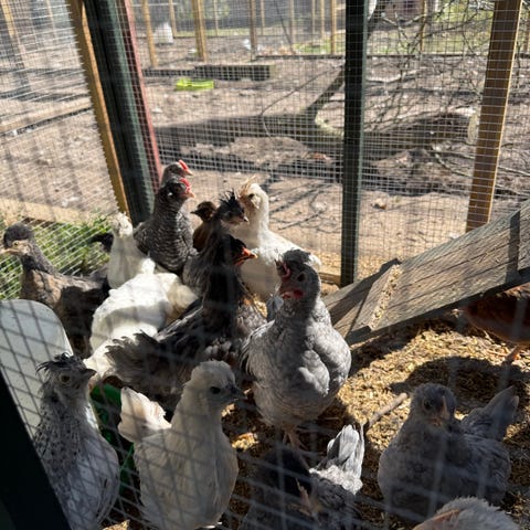Hønsene er af racen İsa Brown og er fra maj 2025. Hønsene lægger æg.
