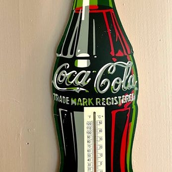 Coca‑Cola neonskilt med glasindfattet, oprindelsesland USA, i næsten ny stand og fuldt funktionel, dateret til 1950–1970, med originalt 120V‑transformator under basen og ekstern 220V‑transformator, vægt 5,0 kg og mål 48 cm høj × 32 cm bred × 15 cm dyb. Klik på den blå "gå til varen" knap, for at købe eller byde på denne vare. Den samlede pris vil blive vist inden du afgiver dit bud.