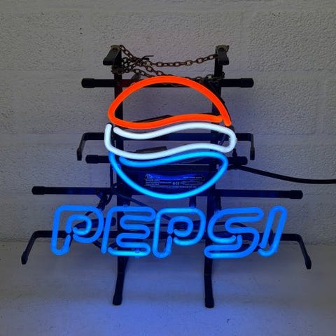 Originalt neon-skilt fra USA i farver, fuldt funktionelt, tænding med trækkædeafbryder, komplet med original 120V-transformator (installeret i basen) og ekstern 220V-transformator til drift; forsikret forsendelse.