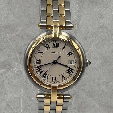 Cartier Panthére 3 rækker guld stor størrelse med quartzur, reference 183957, kasse af guld/stål 29 mm, unisex, periode 1990-1999, stand godt med slid, armbånd guld/stål ca. 16 cm, ingen æske eller papirer, forsendelse forsikret. Klik på den blå "gå til varen" knap, for at købe eller byde på denne vare. Den samlede pris vil blive vist inden du afgiver dit bud.