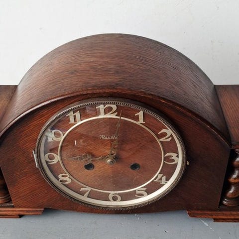 Teknisk: Det mekaniske 8-dages urværk er i fuld funktion. Uret går pænt til tiden og klangen fra slagværket giver en klar, karakteristisk lyd på hele og halve time.