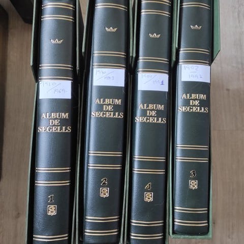 Geografisk oprindelse Spanien; Titel: Samling af frimærker i blokke af 4; Tilstand: Ny uden gum; Periode: 1950–1984; Monteret i 7 album; Indeholder komplette serier fra 1950–1984; Udelukker: 1075/82, 1083, 1083a/b, 1088/1090, 1124/25; Frimærkerne er nye og i god stand. Klik på den blå "gå til varen" knap, for at købe eller byde på denne vare. Den samlede pris vil blive vist inden du afgiver dit bud.