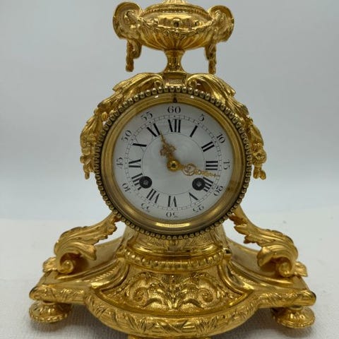 Pragtfuld Vernis Martin bordsur med bronzen ornamenter. Tiden vises på en strålende urskive med kartuscher og blå romerske tal. Hjertet af urskiven er formet af et floralt bronzencentrum. Uret bærer mærket Japy Freres & Cie og bærer en hædersmedalje. Klokken er i fremragende løbetilstand og leveres med en nøgle og en pendel af senere dato. Urskiven er beskyttet af en glasbol, indfattet i en bronze-dør. Klokken bliver omhyggeligt pakket og sendt som aanbevolen. Nogen finjustering efter transport kan