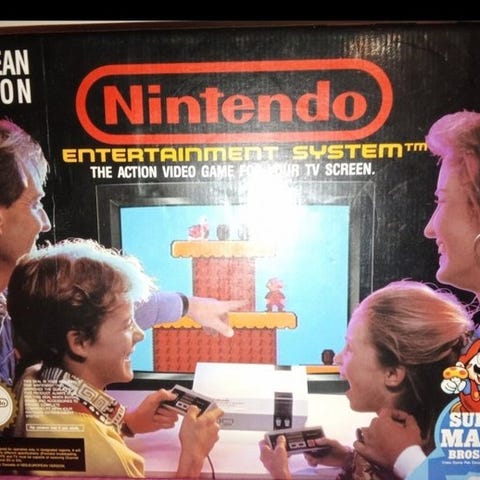 Nintendo NES Control Deck fra 1985 (PAL) med Mario Bros 2, RGB-udgang, i originalemballage med 2 controllere og kabler. Klik på den blå "gå til varen" knap, for at købe eller byde på denne vare. Den samlede pris vil blive vist inden du afgiver dit bud.