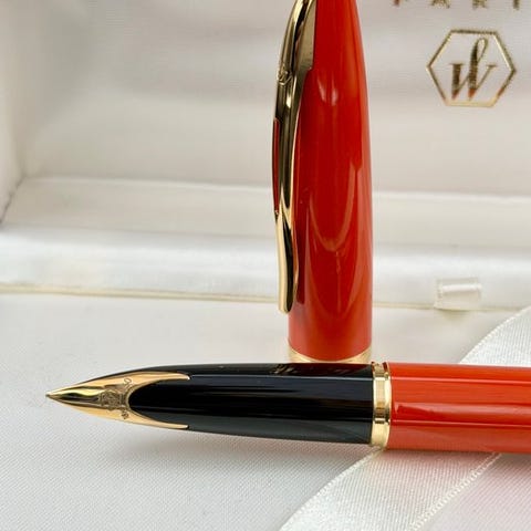 Den elegante Waterman-æske og garantibogen i hvid er inkluderet og ses på billederne.