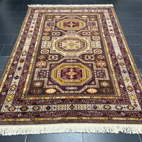 Håndlavet tæppe fra Aserbaijan, enkeltstykke, dimensioner 255 × 134 cm, uld på uld, midten af det 20. århundrede, generelt i rimelig stand med tegn på alder og slid. Klik på den blå "gå til varen" knap, for at købe eller byde på denne vare. Den samlede pris vil blive vist inden du afgiver dit bud.