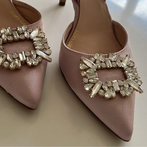 - Gucci pumps med strass, i burgunder laklæder. Butikspris 1550€