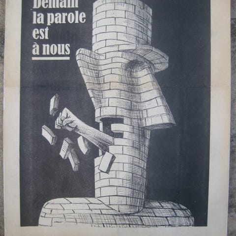 Oprindelse: Atelier Populaire, tidligere École des Beaux-Arts (ægte stempel synligt nederst til højre).