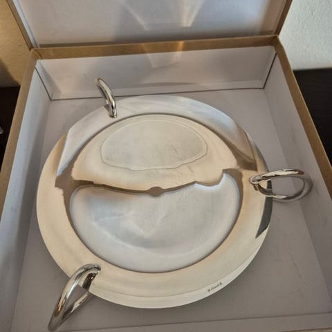 Raffineret sæt bestående af 12 miniatureer i sølvplade, afbildende engle. Hver figur har et lille fad med en støtteklips, beregnet til at holde visitkort, navneskilt eller små kort.