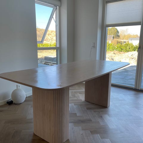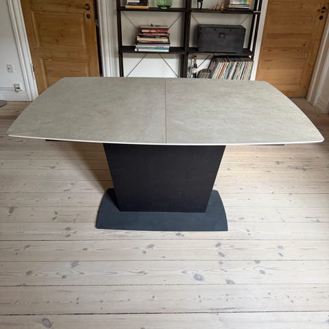 Bordpladen er varmefast og tåler varme genstande som gryder og pander, uden brug af bordskåner.