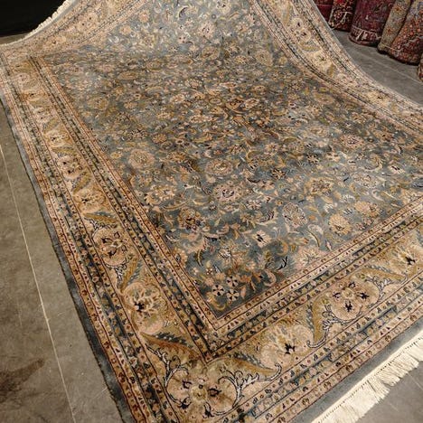 Håndvævet orientalsk tæppe fra Indien, uld på bomuld, slutningen af det tyvende århundrede, mål 360 × 253 cm, i meget god stand, med ægthedscertifikat. Klik på den blå "gå til varen" knap, for at købe eller byde på denne vare. Den samlede pris vil blive vist inden du afgiver dit bud.