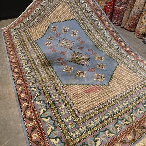 Vennligst betragt tæppet med tålmodighed og opmærksomhed. Hvert håndlavet tæppe er unikt i sit mønster, skønhed og farveharmoni, og derfor er det et kunstværk i sig selv.