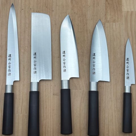 Sæt med 5 japanske køkkenknive fra forskellige producenter.
