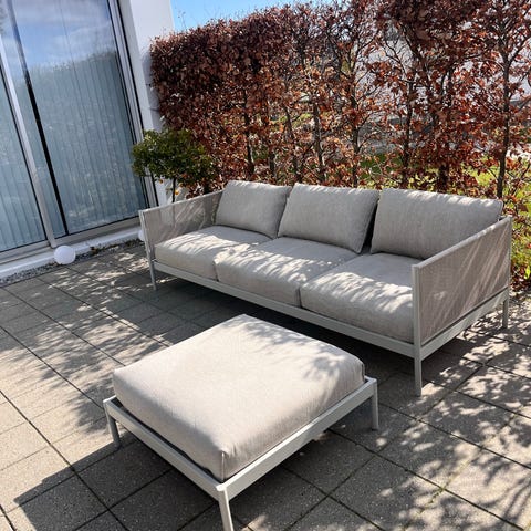IKEA NÄMMARÖ havesofa+bord : 3-pers. 210 cm lysebrun med grå hynder
