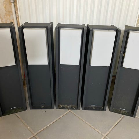 Masser af lange kabler, transformere og sikringsboks til udendørs belysning.