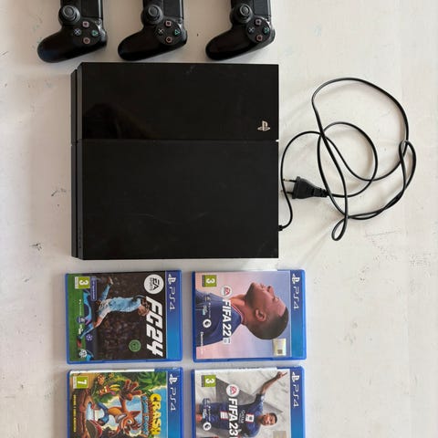 PlayStation 4 konsol med controller. Der medfølger ikke HDMI kabel.