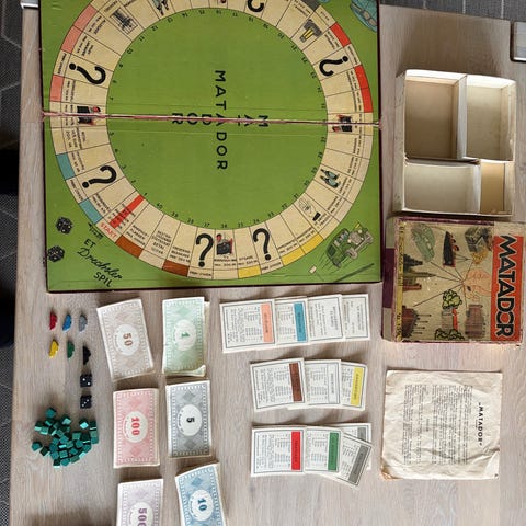 Matador brætspil fra BRIO med spilleplade, kort, pengesedler, huse, hoteller og terninger. Klar til mange timers hygge rundt om bordet.