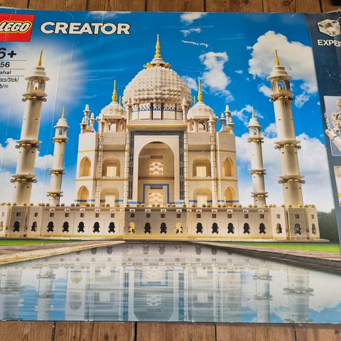 LEGO Creator Taj Mahal byggesæt med mange detaljer og lys sandfarvede klodser. Stor model med flere små tårne og kupler, som kan bygges op efter den viste facade.