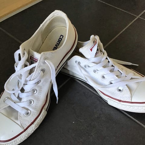 Disse Converse All Star high-top sneakers i rød har en klassisk. Siderne er prydet med et 'ALL STAR' print. Brugte, alm brugspor, lige som viste på billeder. Ingen defekter.