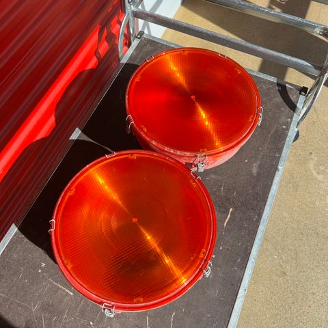Trailer tester kabel med rund stik til stoplys, blink og positionslys. Lang ledning med stik i begge ender, klar til at teste trailerens el. system.