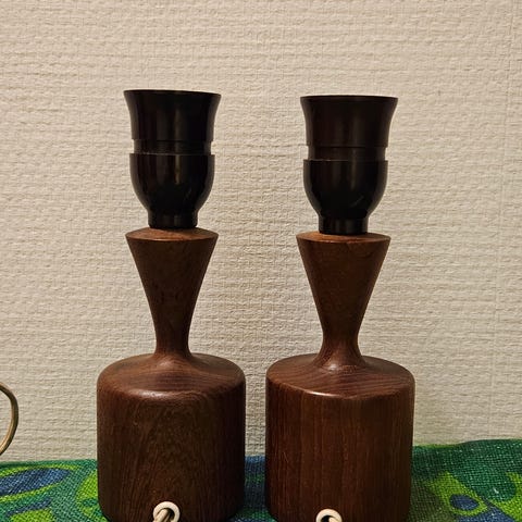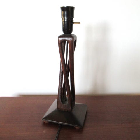 Lampe i teak med 4 stærkt snoede søjler, super flot udførelse.