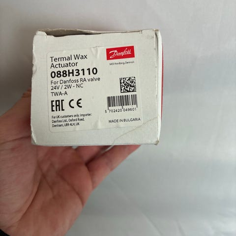 Danfoss AIR Unit ventilationsanlæg i hvid sælges. Enheden står i original emballage med mærkater og typeskilt på siden.