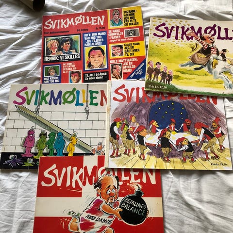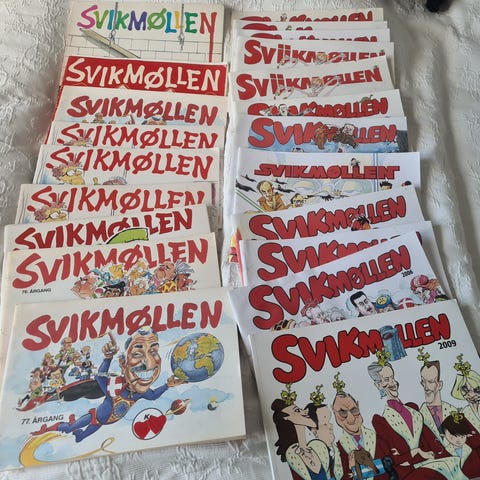 Samling af Svikmøllen julehæfter sælges samlet. Forskellige årgange med farverige forsider og klassiske satiretegninger.