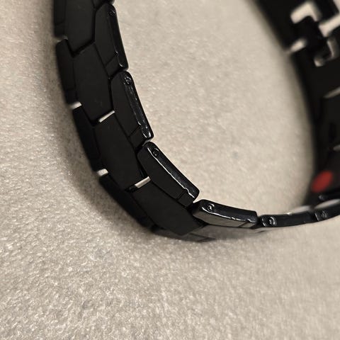Armbåndet har indbyggede magneter på indersiden og et stilrent, klassisk udtryk, der passer til både hverdag og pænere brug.