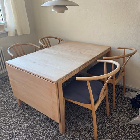 Klapspisebord med klapper på begge sider, stole kan medfølger hvis ønsket (der er 4)